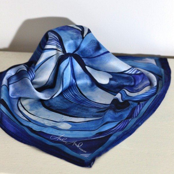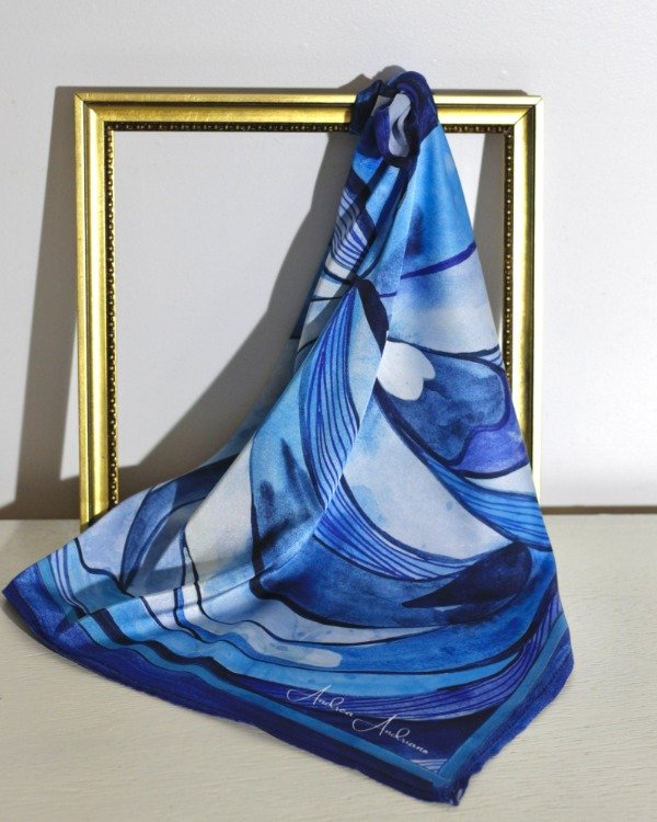 Nuestros pañuelos están confeccionados en seda de poliéster de alta calidad, impresos mediante sublimación para lograr colores intensos y duraderos. Cada pieza es cortada y cosida de manera artesanal, lo que convierte a cada pañuelo en un accesorio único.
