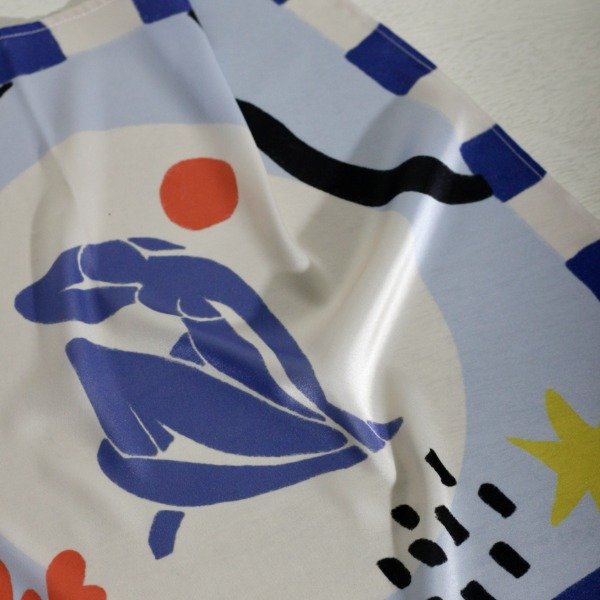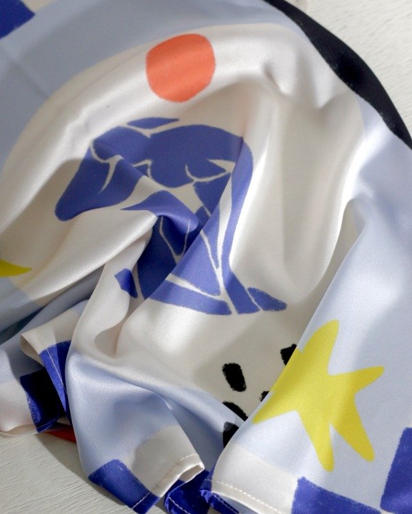Nuestros pañuelos están confeccionados en seda de poliéster de alta calidad, impresos mediante sublimación para lograr colores intensos y duraderos. Cada pieza es cortada y cosida de manera artesanal, lo que convierte a cada pañuelo en un accesorio único.